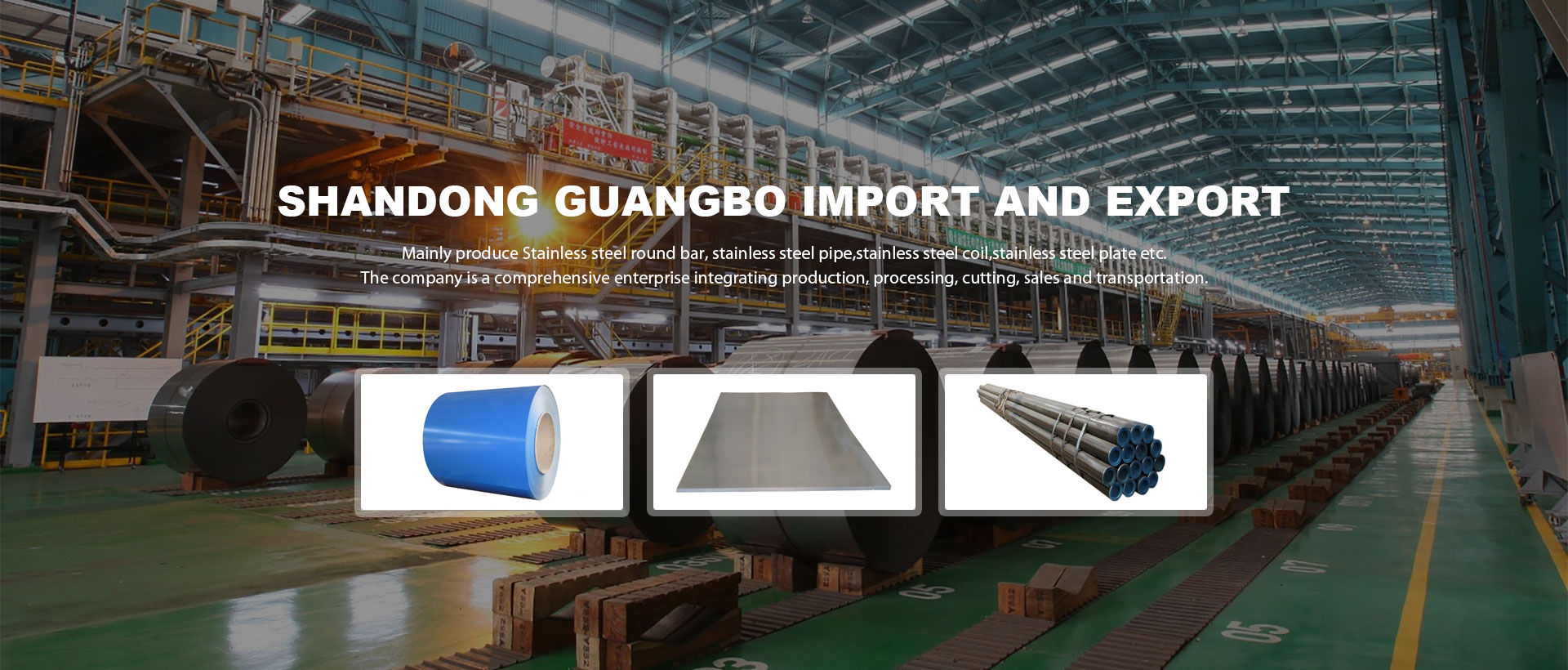 Shandong Guangbo import and Export Co., Ltd. is a large-scale modern steel complex integrating sintering, ironmaking, steelmaking, continuous casting, steel rolling, and metal products production processes.Mainly produce Stainless steel round bar, stainless steel pipe,stainless steel coil,stainless steel plate etc.